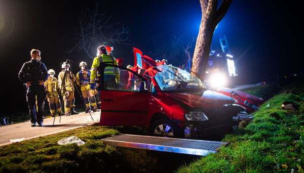 Ein Pkw-Fahrer ist zwischen Bad Sassendorf-Ostinghausen und Lippstadt-Lohe aus ungeklärter Ursache von der Fahrbahn abgekommen und gegen einen Straßenbaum geprallt. Der Fahrer wurde im Fahrzeug eingeklemmt.