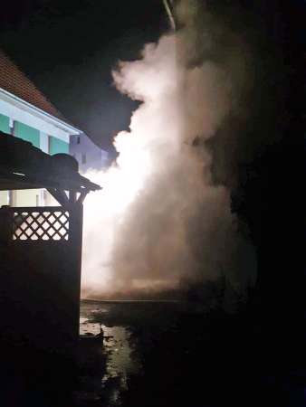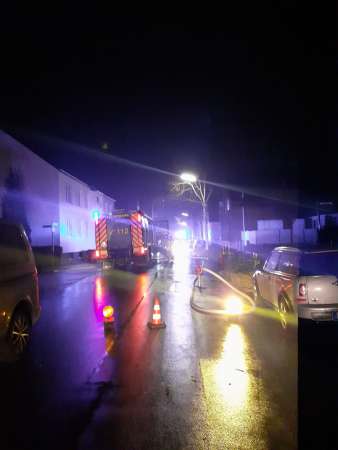 Bei Eintreffen der Feuerwehr konnte eine starke Rauchentwicklung festgestellt werden. Vier Bewohner konnten vor Eintreffen der Feuerwehr das Wohnhaus eigenständig verlassen. Aus ungeklärter Ursache brannte es unter einer unterkellerten Holzterrasse in voller Ausdehnung. Betroffen war außerdem ein Kellerraum. Der Brandrauch konnte sich im Inneren des Wohnhauses ausbreiten. Zur Brandbekämpfung wurde ein Trupp unter Atemschutz mit einem C-Rohr im Außen- und Innenbereich eingesetzt. Ein weiterer Trupp unter Atemschutz kontrollierte alle Etagen des Wohnhauses. Nach der Brandbekämpfung wurde das gesamte Wohngebäude mittels Hochleistungslüfter quergelüftet. Durch die Stadtwerke wurde das Gebäude stromlos geschaltet.
