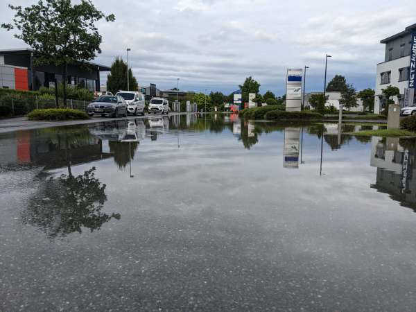 108 Einsätze, 158 Einsatzkräfte. Überwiegend Wasser im Keller im Süden der Kernstadt. Stand: 19:45 Uhr