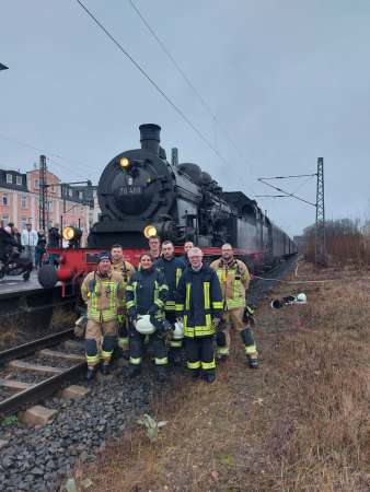Die Lengericher 78 468 der Eisenbahnfreunde aus Bielefeld hat heute Vormittag kurz Halt im Gleis 3 gemacht. Der Grund hierfür war, dass erforderliche Betanken der Dampflok mit Wasser durch die Feuerwehr.
