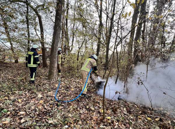 Ein brennender Baumstumpf wurden mit dem Schnellangriff abgelöscht. Die umliegenden Flächen wurden bewässert.