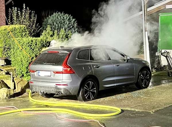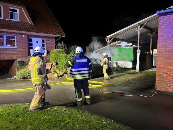 Ein brennender PKW wurde mit einem C-Rohr abgelöscht.