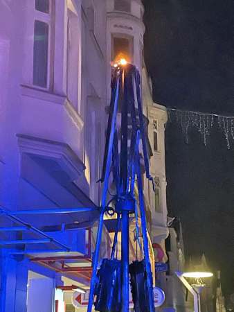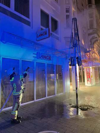 Ein brennender Sonnenschirm wurde mit einem C-Rohr abgelöscht.