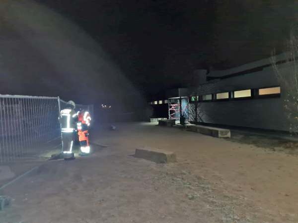 Die Einsatzstelle wurde weiträumiger abgesperrt. Während dieser Maßnahmen kam es immer wieder zu weiteren, deutlich hörbaren Nachsackungen der Sporthalle. Die Stadtwerke, das Ordnungsamt und ein Baufachberater des THW wurden nachalarmiert. Die Versorgung des Gebäudes wurde durch die Stadtwerke abgestellt. Durch die Feuerwehr und Mitarbeiter vom städt. Baubetriebshof wurde die Sporthalle vollständig mit einem Bauzaun eingezäunt.