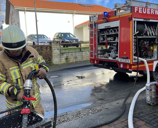 Eine brennende Mülltonne wurde durch die Feuerwehr ins Freie gebracht und abgelöscht. Das Gebäude wurde mittels Wärmebildkamera kontrolliert. Ein Übergreifen konnte verhindert werden.