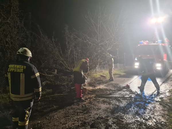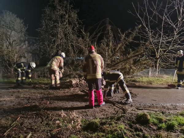 Ein umgestürzter Baum wurde von der Feuerwehr von der Straße beseitigt.