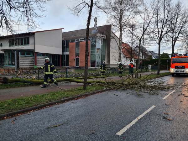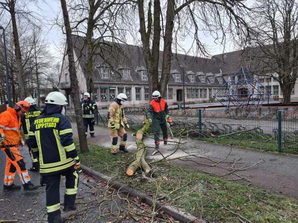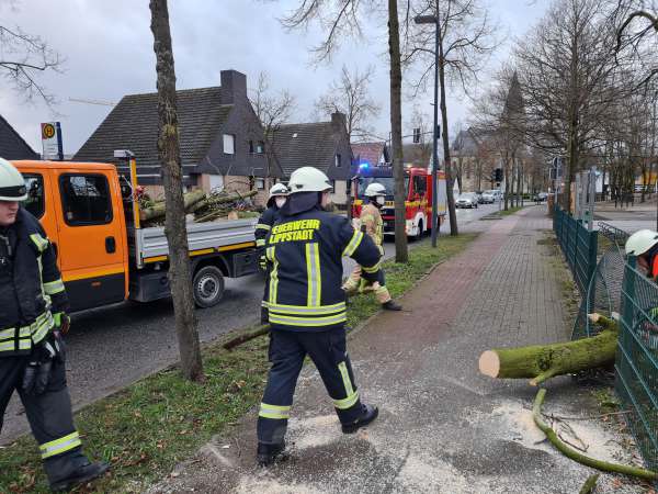 Ein größerer Ast ist aus einem Baum auf dem Schulhof abgebrochen und auf dem Rad- und Gehweg der Sandstraße gestürzt. Der Ast wurde von Feuerwehr und Baubetriebshof beseitigt.