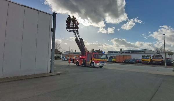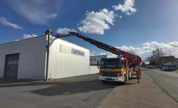Eine Werbeschild wurde durch den Orkan abgerissen und auf das Flachdach geweht. Das Werbeschild wurde von der Feuerwehr über den Korb der Drehleiter vom Flachdach entfernt und anschließend dem Eigentümer übergeben.