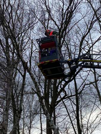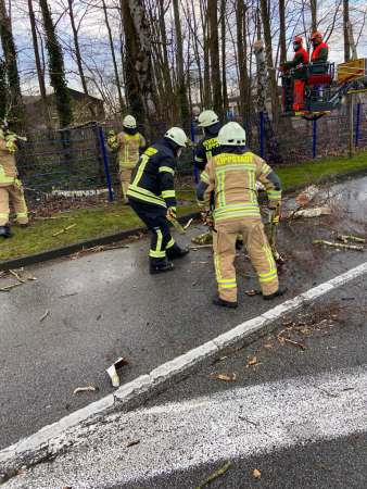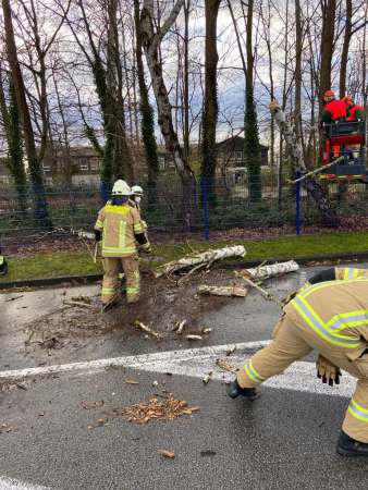 Baum in Schieflage, drohte auf die Fahrbahn und Radweg zu stürzen. Der Baum wurde von der Feuerwehr beseitigt.