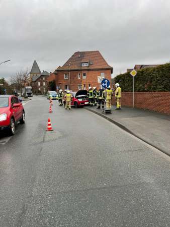 Verkehrsunfall im Kreuzungsbereich Rüthener Straße / Langeneicker Straße / Grandweg. Zwei Personen wurden dabei verletzt. Die Einsatzstelle wurde von der Feuerwehr gegen den fließenden Verkehr abgesichert. Der Brandschutz wurde mit zwei verschiedenen - unabhängig voneinander - Löschmitteln sichergestellt. Fahrzeugbatterien abgeklemmt. Unterstützung der Polizei bei der Unfallaufnahme und Unterstützung des Abschleppunternehmens. Abschließend wurde die Fahrbahn von der Feuerwehr gereinigt. Die Straße wurde von der Polizei wieder für den Verkehr freigegeben.