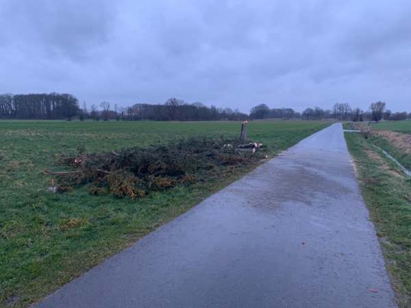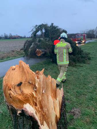 Eine umgestürzte Tanne wurde von der Feuerwehr von der Straße beseitigt.