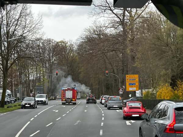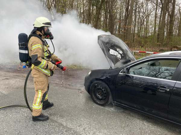 Bei Eintreffen der Feuerwehr wurde eine starke Rauchentwicklung festgestellt. Flammen schlugen bereits durch die Motorhaube. Die Fahrerin und zwei Kinder konnten sich rechtzeitig in Sicherheit bringen. Zur Brandbekämpfung wurde ein Trupp unter Atemschutz mit dem Schnellangriff eingesetzt.