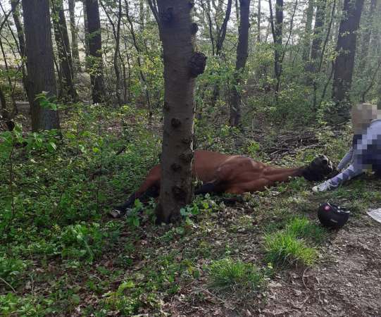 Vor Eintreffen der Einsatzkräfte konnte sich die Reiterin eigenständig befreien. Die Reiterin wurden vom Rettungsdienst erstversorgt und anschließend in ein Krankenhaus transportiert. Das Pferd wurde von anderen Reiterinnen bis zum Eintreffen eines – durch die Reiterinnen bestellten – Tierarztes betreut.