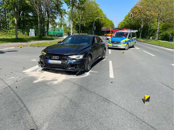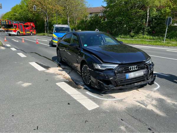 Verkehrsunfall im Kreuzungsbereich Stirper Straße / Otto-Hahn-Straße mit zwei beteiligten Fahrzeugen. Die Einsatzstelle wurde gegen den fließenden Verkehr abgesichert. Parallel dazu wurden die verunfallten Fahrzeugen gegen Wegrollen gesichert und der Brandschutz wurde sichergestellt. Vier beteiligte Personen wurden vom Rettungsdienst gesichtet. Ausgelaufene Betriebsstoffe wurden von der Feuerwehr mit Ölbindemittel abgestreut. Die Drehleiter wurde zur Unterstützung für die Unfallaufnahme durch die Polizei eingesetzt.