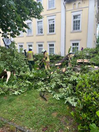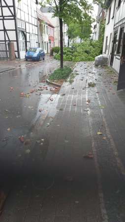 Eine Gewitterfront ist von Westen über die Ortsteile Eickelborn, Lohe, Benninghausen und Hellinghausen in den Bereich Kernstadt (Mitte) und teilweise Kernstadt (Nord) gezogen und hat mächtige Verwüstungen angerichtet. Auch die Wohngebiete "Am Mondschein" und der Stadtteil Esbeck sind betroffen. Größenteils handelt es sich um umgestürzte Bäume auf Straßen oder Gehwegen. Die Gesamtwehr ist pausenlos im Einsatz und wird mittlerweile von einigen Feuerwehren aus dem Kreis Soest sowie dem THW unterstützt.