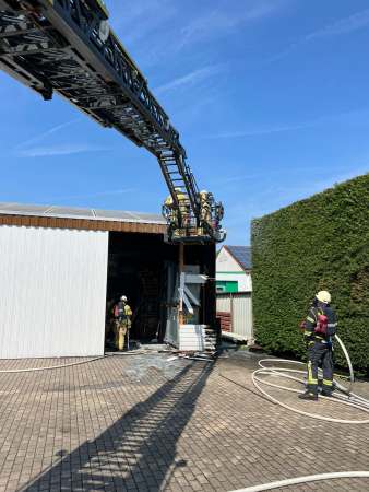 Aus ungeklärter Ursache ist es zu einem Brandereignis im Bereich der Fassade einer Lagerhalle gekommen. Der Brand wurde durch die Feuerwehr Lippstadt mit zwei Atemschutztrupps mit je einem C-Rohr bekämpft. Die Fassade und das Dach wurden im Anschluss mit der Wärmebildkamera auf Glutnester kontrolliert.
