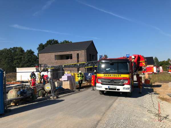 Arbeitsunfall im Neubaugebiet Grüner Weg / Sommerweg. Eine männliche Person ist von der Bodenplatte ca. 3 - 4 m in das Kellergeschoß gestürzt. Die Feuerwehr unterstützte den Rettungsdienst bei der Erstversorgung im Keller. Mit Unterstützung der Höhenrettergruppe Kreis Soest wurde die verunfallte Person gerettet und an den Rettungsdienst übergeben. Die Person wurde lebensgefährlich verletzt. Der Transport erfolgte mit dem Rettungshubschrauber in eine Spezialklinik.