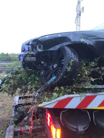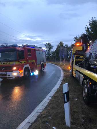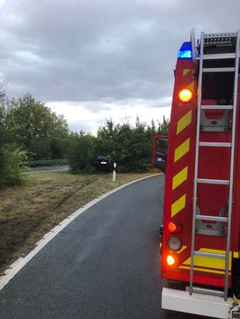 Ein Fahrzeug ist aus unbekannter Ursache beim Verlassen der B 55 von der Fahrbahn abgekommen und in einem Busch zum Stehen gekommen. Der Rettungsdienst wurde abgesichert.