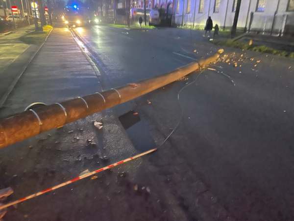 Ein Elektrofachunternehmen und der Rüstwagen Logistik (RW-L) wurden nachalarmiert, da Beleuchtungsteile und Kabel abgerissen wurden und die Betonsäule mittels Seilwinde von der Fahrbahn gezogen werden musste. Nachdem die Fahrbahn geräumt wurde, konnten durch die Fachfirma weitere Beleuchtungssegmente entnommen werden.