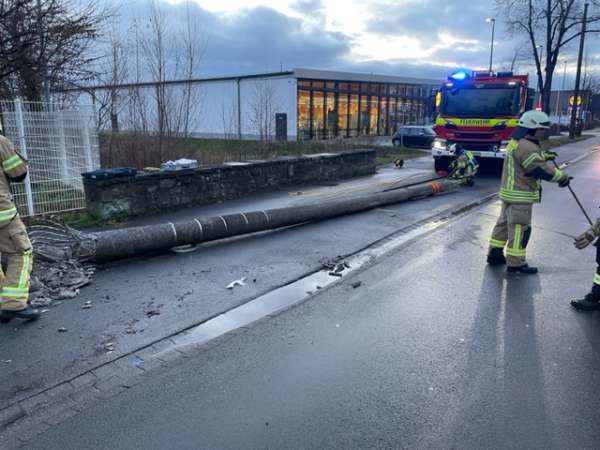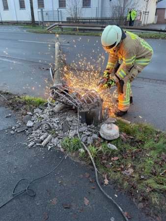Eine Betonsäule zur Befestigung der Straßenbeleuchtung lag bei Eintreffen der Feuerwehr quer auf der Fahrbahn. In Fahrtrichtung Bad Waldliesborn stand hinter der Säule ein LKW auf dem Radweg, der leichte Beschädigungen im Heckbereich aufwies. Die Einsatzstelle wurde durch die Feuerwehr abgesichert.