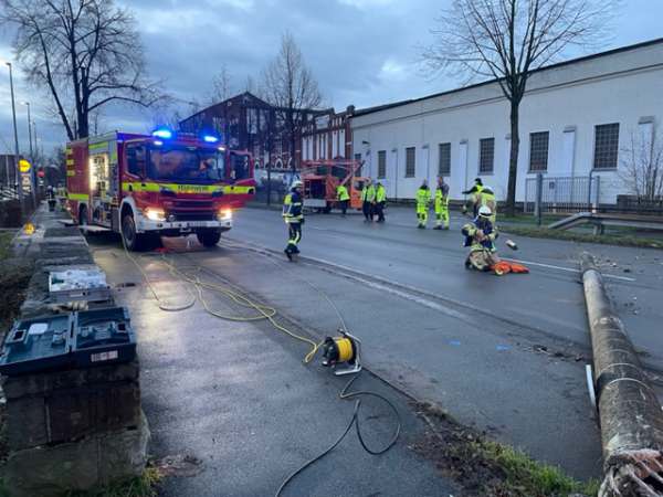Die Feuerwehr sicherte während der Maßnahmen die Einsatzstelle weiter ab und unterstützte bei den Aufräumarbeiten. Für die Dauer der Arbeiten war die Wiedenbrücker Straße für ca. 1 1/2 Stunden voll gesperrt