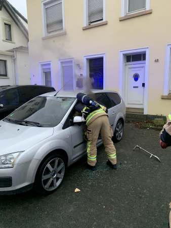 Bei dem Pkw-Brand handelte es sich um einen Brand im Innenraum des Fahrzeugs welcher vom Armaturenbrett aus ging. Der Innenraum wurde durch einen Trupp unter PA mit einem C-Rohr abgelöscht. Des Weiteren wurde Batteriemanagement durchgeführt. Nach Beendigung der Maßnahmen wurde die Einsatzstelle an die Polizei übergeben.
