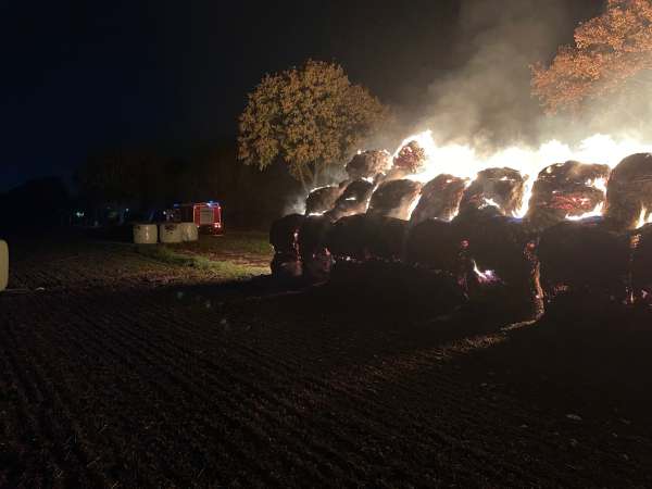 Es brannten ca. 100 Stroh- bzw. Heuballenbrand in voller Ausdehnung in Höhe von dem Suckeweg. Von der Feuerwehr wurde der Brand kontrolliert abbrennen gelassen. Zusammen mit dem Besitzer wurden die Stroh- und Heuballen auseinander gezogen, um das Abbrennen zu erleichtern. Die Löschgruppe Bökenförde stellte bis 8 Uhr eine Brandwache.