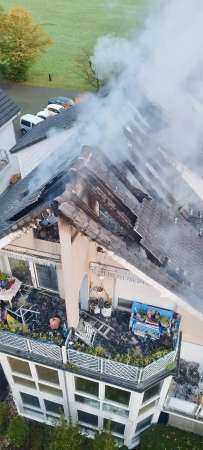 In einer Dachgeschoßwohnung eines Mehrfamilienhauses ist es aus bislang ungeklärter Ursache zu einem Brand gekommen. Der Brand ist auf den Dachstuhl übergegriffen und dieser brannte in voller Ausdehnung. Eine vermisste Bewohnerin konnte nur tot geborgen werden. Ein Bewohner wurde verletzt von der Feuerwehr gerettet und nach der Erstbehandlung durch den Rettungsdienst in ein Krankenhaus transportiert. Die anderen Bewohner des Mehrfamilienhauses konnten sich eigenständig in Sicherheit bringen.