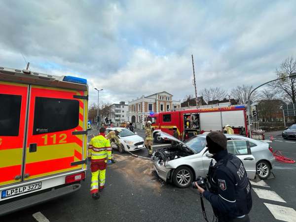 Verkehrsunfall mit zwei beteiligten Fahrzeugen und drei leicht verletzten Personen im Kreuzungsbereich LIppertor / Lipperoder Straße. Die verletzten Personen wurden vom Rettungsdienst untersucht. Ausgelaufene Betriebsstoffe wurden von der Feuerwehr abgestreut.