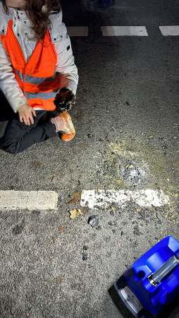 Mehrere Klimaktivisten haben sich auf der Fahrbahn festgeklebt und den Verkehr lahm gelegt. Die Feuerwehr unterstützte bei der Entfernung von einer Klimakleberin von der Fahrbahn.