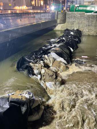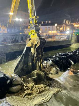 Als zusätzliche Maßnahme werden heute Abend nach Abschluss des Dammrückbaus gegen 20 Uhr die Big Bags am Tivoli entnommen, um bei der bestehenden Hochwassersituation den Abflussquerschnitt der Lippe freizugeben. Damit wird sich das Flussbett der Lippe zunächst wieder auffüllen.