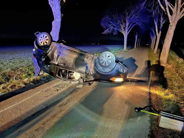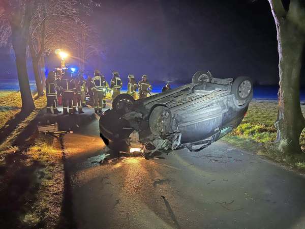 Aus ungeklärter Ursache hat sich ein Pkw überschlagen und ist auf dem Dach liegengeblieben. Dabei wurde eine Person verletzt. Nach der Erstversorgung erfolgte der Transport in ein Krankenhaus. Der Brandschutz wurde sichergestellt und die Einsatzstelle wurde zur Unfallaufnahme der Polizei ausgeleuchtet.