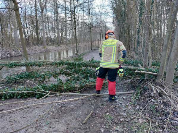 Ein Baum wurde mittels Kettensäge zerkleinert und bei Seite geräumt.
