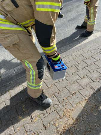 An einer Batterie kam es zu einer Rauchentwicklung, die Batterie wurde ausgebaut und gekühlt.