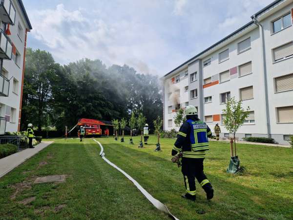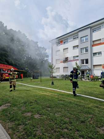 Nach dem Eintreffen wurde eine massive Rauchentwicklung aus einem Fenster im 1 Geschoss festgestellt. Zwei Bewohner aus der Brandwohnung wurden direkt dem Rettungsdienst übergeben und leicht verletzt ins Krankenhaus verbracht. Eine Evakuierung der Bewohner wurde eingeleitet. Es befand sich niemand mehr im Gebäude.