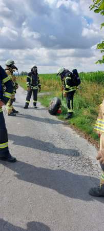 Die Einsatzstelle wurde abgesperrt. Gas aus einem Gasbehälter wurde nach Rücksprache mit einem Fachunternehmen kontrolliert ausströmen gelassen. Die Entsorgung erfolgt durch ein Fachunternehmen.