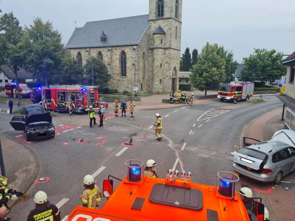 Im Kreuzungsbereich Lippestraße / Bismarckstraße / Sandstraße kam es zu einem Verkehrsunfall mit drei beteiligten Fahrzeugen. Es gab drei verletzte Personen, wovon 1 Person in ihrem Fahrzeug eingeschlossen war und von der Feuerwehr mit hydraulischem Rettungsgerät befreit werden musste.