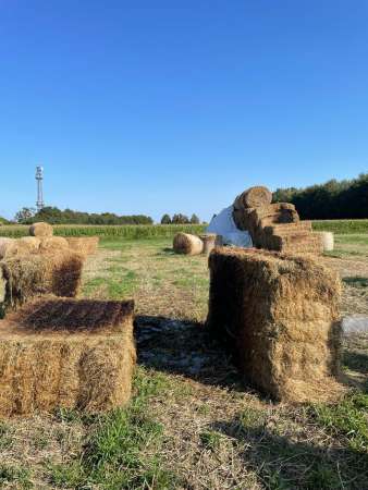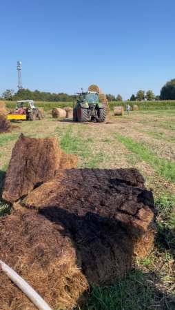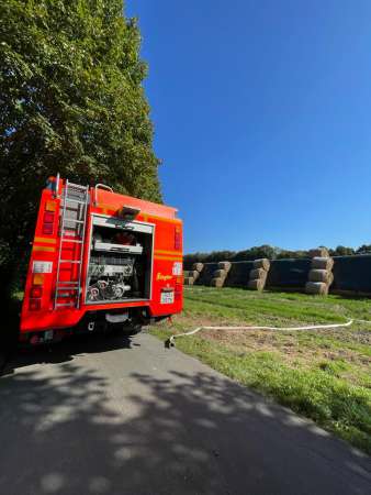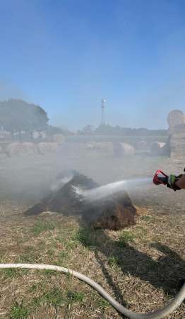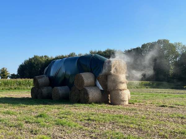 Rauchentwicklung aus einem Strohballenlager. Kein offenes Feuer. Die Strohballen wurden mit Hilfe des Landwirts auseinander gezogen und abgelöscht.
