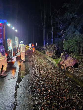 Zwei entwurzelte Bäume wurden von der Löschgruppe Dedinghausen entfernt.