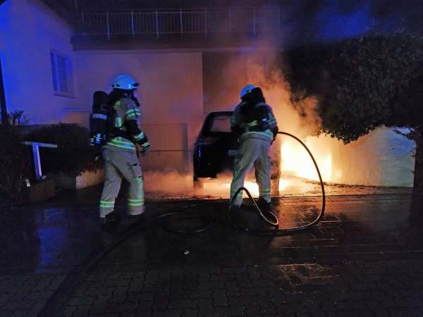 Pkw-Brand wurde von einem Trupp unter Atemschutz mit einem C-Rohr abgelöscht.