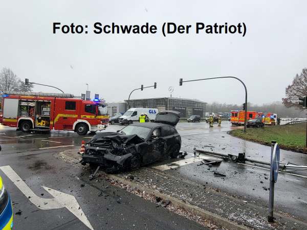Verkehrsunfall im Kreuzungsbereich B 55 / Lipperoder Straße / Lippestraße mit zwei Fahrzeugen. Zwei verletzte Personen wurden vom Rettungsdienst behandelt und anschließend in ein Krankenhaus transportiert. Ausgelaufene Betriebsstoffe wurden von der Feuerwehr abgestreut.