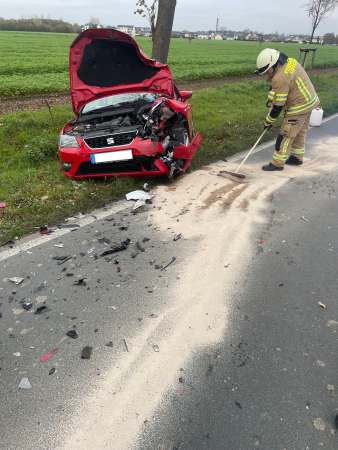 Aufgaben der Feuerwehr waren es ausgelaufene Betriebsstoffe mit Ölbindemittel aufzufangen. Der Brandschutz wurde sichergestellt und die Fahrzeugbatterien wurden abgeklemmt