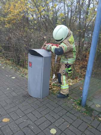 Eine brennende Mülltonne am Bahnsteig 1 (Bahnhof Dedinghausen) wurde von der Feuerwehr mit einen Kleinlöschgerät abgelöscht.