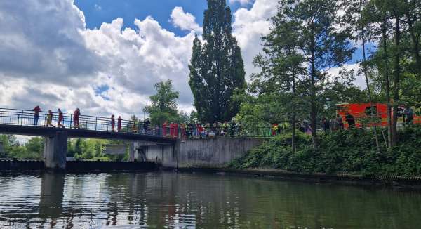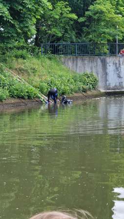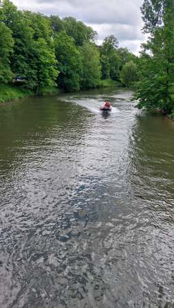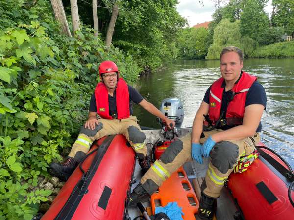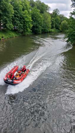 Durch Kanuten wurde im Schifffahrtskanal an der Wehranlage in Höhe von dem Spielplatz ein Paddel und ein Schuh festgestellt. Vor Ort konnte dies durch die Einsatzkräfte bestätigt werden. Die Wehranlage wurde gesenkt und Taucher wurden eingesetzt. Es konnte allerdings keine Person aufgefunden werden.