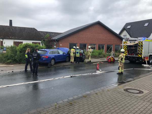 Bei einem Verkehrsunfall mit zwei beteiligten Fahrzeugen wurden drei Personen verletzt. Der Verkehrsbereich wurde abgesichert. Die Feuerwehr unterstützte den Rettungsdienst und stellte den Brandschutz sicher.