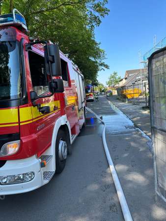 Die Gasflasche in einem Neubau wurde aus sicherer Entfernung von einem Trupp unter Atemschutz gekühlt. Anschließend wurde das Ventil zugedreht. Die Gasflasche wurde geborgen und in ein Wasserbad eingelegt.