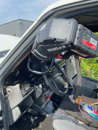 Zur Brandbekämpfung im Innen- und Motorraum wurde ein Trupp unter Atemschutz mit einem C-Rohr eingesetzt.
