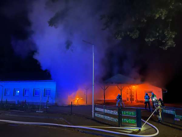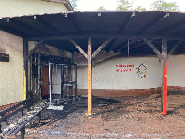 Der Brand ist auf ein Vordach übergegriffen. Zur Brandbekämpfung wurden zwei C-Rohre eingesetzt. Fotos: Pressestelle der Kreispolizeibehörde Soest