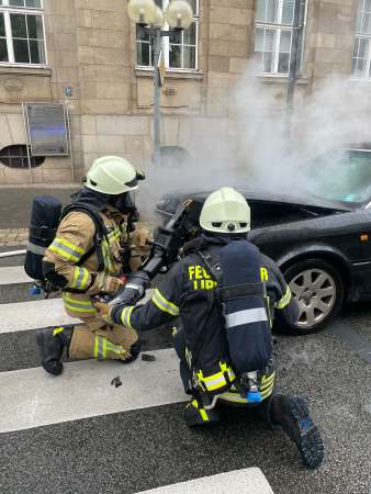 Zur Brandbekämpfung im Motorraum wurde ein Trupp unter Atemschutz eingesetzt.