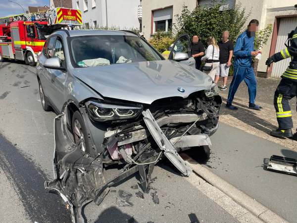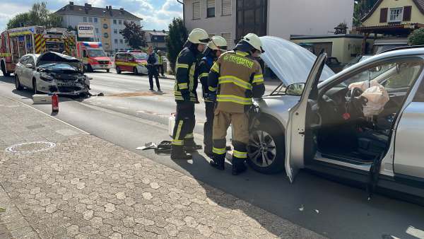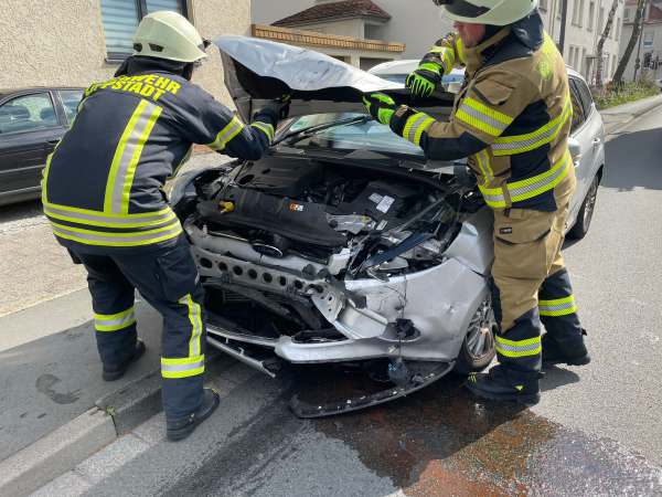 Verkehrsunfall mit zwei beteiligten Fahrzeugen. Die Fahrzeuge wurden gegen wegrollen gesichert und der Brandschutz wurde sichergestellt. Vier Personen wurden leicht verletzt. Drei Personen wurden von dem Rettungsdienst in Krankenhäuser transportiert. Die Fahrzeugbatterie wurde abgeklemmt und ausgelaufene Betriebsstoffe wurden von der Feuerwehr mit Ölbindemittel abgestreut.